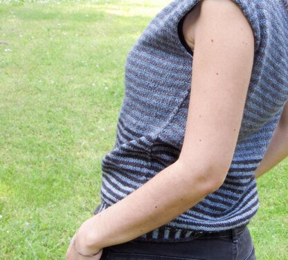 Wool Knot is a seamless, featherweight tee mostly worked in the round, from the top down. The pattern starts by working the shoulders to the underarms, then the front and back are joined together and the body worked in one piece, with zero finishing. The top features a basic stockinette/stocking stitch pattern with endless stripe combinations and nice little details. Knit your Wool Knot with a lightweight yarn at a loose gauge to achieve light fabric with a drapey look.