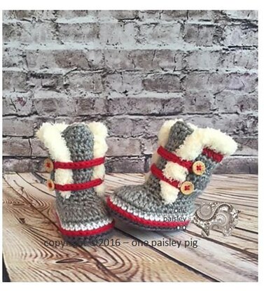 Super cozy and fun booties for the special little one in your life. This easy to advanced beginner pattern works up in just a few hours.