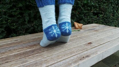 In order to remedy a lack of snowflakes on Christmas day I designed this is a cuff down sock with flap heel and basic stranded colourwork