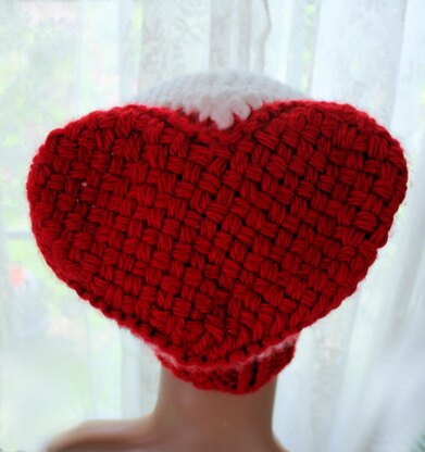 I used the new Heart Loom in the 1/2" gauge 60 pegs Cindwood Looms. I used 2 colors in Lions Brand Hometown USA. It is a pretty beginner friendly pattern. You weave the heart then knit your way down to the brim. So it is a top down hat. Cute and fun thing is the heart shows form the back but the front it looks like ears. It has video tutorials along with written instructions.
