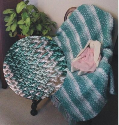 A delightful combination of texture, soothing patterning and calming colors come together to create a cherished blanket to keep or to share.