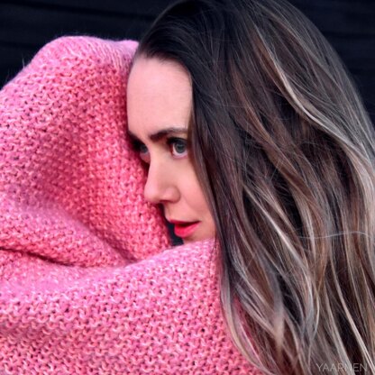 The cardigan is worked in one rectangular piece knitted flat in rows. Then you fold the finished piece together and sew the side seams leaving spaces for armholes. To achieve the marled tweedy texture, the garment is worked with two strands of yarn, one of each color, held together. You can also use a single strand of a chunky weight yarn for this cardigan (to ensure proper size gauge check is imperative).