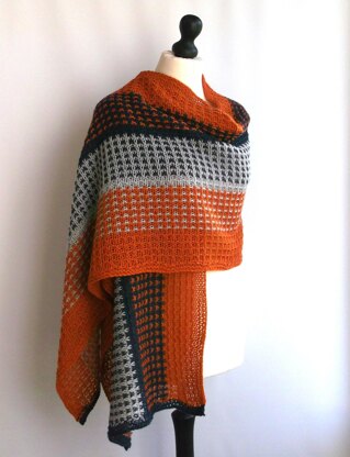 This long wrap uses a simple slip stitch pattern to create texture and interest. Casting on stitches to work lengthwise upwards.