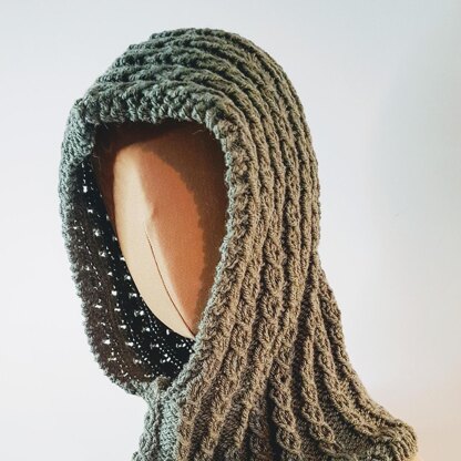 I designed this hooded cowl to be warm and just the right kind of snug. This is a must-have autumn/winter accessory for those who want a scarf and a hat all-in-one. Wear it with the hood up when it’s cold or down to get a stylish hoodie look. The wriggles are created using a mock cable pattern, a fun and easy way to get the celtic aran style without the fuss of using cable needles.