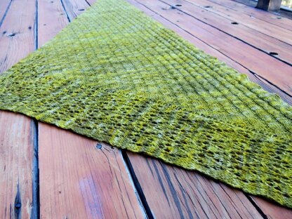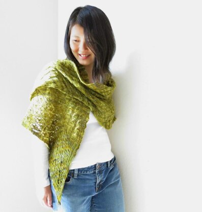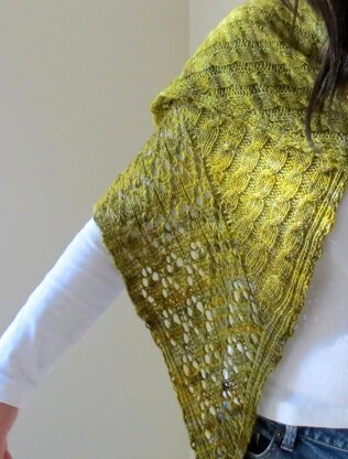 An asymmetrical shawl worked sideways from one end to the other.