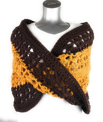 The X-capade Mobius Wrap was written in 9 sizes for the perfect customization of fit for fitting around your shoulders for cooling weather, or go larger to wrap yourself in extra warmth over your outerwear.