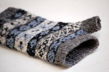 These fair isle mitts are a quick knit, using just 4 shades of Jamieson’s Shetland Spindrift 4ply wool yarn. The pattern is suitable for knitters who are comfortable working stranded colourwork in the round. Shown in shades Shaela, Black, Lomond and Eesit.