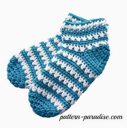 Quick, easy and fun slipper socks to make and great stash busters too! Pattern is designed for US Women’s 8-9 sizing, with guidance on how to adjust for bigger or smaller sizes.