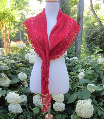 Ybor is a crescent-shaped scarf or wrap approximately 76 inches (193 cm) from point to point along the inner curve and 14 inches (35.6 cm) at the widest point after blocking. It is worked from the top and center and gradually grows to its full length and width.