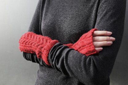 These wristwarmers are a fairly simple knit, with cables on the front and twisted rib on the palm-side. Perfect if you want to break into cables!