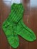 I designed these socks to highlight the first yarn I dyed myself. I wanted a stretchy texture, so that I could use the pattern to make socks for our whole family; but nothing too complicated, so that the hand dyed colours would get a chance to shine. The "mistake ribbing" texture is very stretchy and so should fit most adult feet. I made a pair for my 8 year old, by sizing down the needles. The gauge and measurements for that project are included in the pattern.