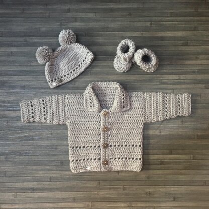 ZAC BABY CARDIGAN SET CROCHET PATTERN PDF - A cute baby jacket | sweater, hat and booties set in 4 sizes 0-3 Months to 2 years. Jacket and booties made seamless bottom up. Hat top down. Unisex | Gender neutral - Baby Boy or Baby Girl.