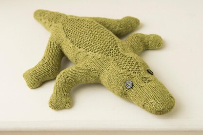 Zach the crocodile has a soft and cuddly finish. His textured detail is achieved by working cables and moss stich.