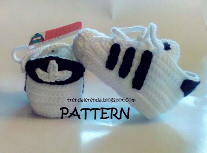 Zapatillas de crochet de bebé inspiradas en las Adidas Superstar.