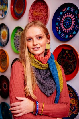 Simple colour changes create a contemporary geometric pattern on this shallow triangular shawl.