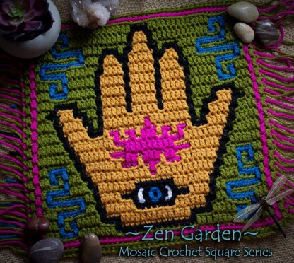 Zen Garden Mosaic Square - Hamsa Hand