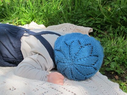 These charming bonnets are made in pure wool to keep out the cold and come in three sizes, newborn, 6 months and 12 months. Babies differ enormously and these are based on average sizes. An attractive zig-zag frames the face and the decreases on the crown form a star ( a simpler version omitting this is included). The bonnet can be fastened loosely under the chin with stretchy, knitted ties.