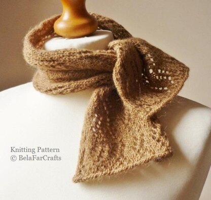 The yarn I used for this accessory is provided in the pattern, but it is now discontinued. Other lightweight yarns, preferably alpaca or blend, would work very well. You might find knitting with this fine yarn easier using bamboo needles.