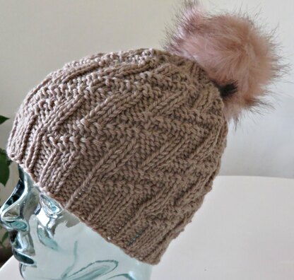 This hat is knit in the round from the bottom up. The Zigzag Stitch Pattern is quite stretchy and therefore fits many sizes. Perfect for a quick gift!