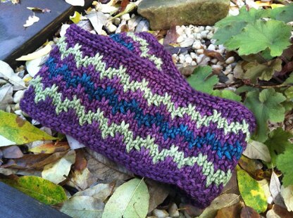 A fun cowl for playing with color! Slipped and picked up stitches are used to make a zig-zag effect--only one color is worked per row. The pattern contains options for using either aran or bulky weight yarn, and both the circumference and height are easily customized. This pattern is for the advanced beginner; written instructions, including a photo tutorial, are used.