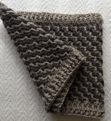 The zigzag cowl is a beginner-friendly interlocking/intermeshing crochet design. It includes a chart, written instructions, and a YouTube video tutorial.