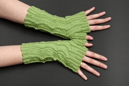 These unisex fingerless mittens feature a zigzag rib pattern. The back of the hand is decorated by a double zigzag rib. They match my ZigZag Hat.