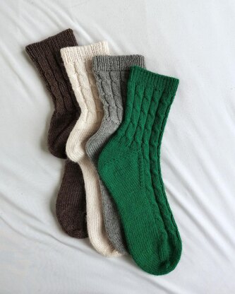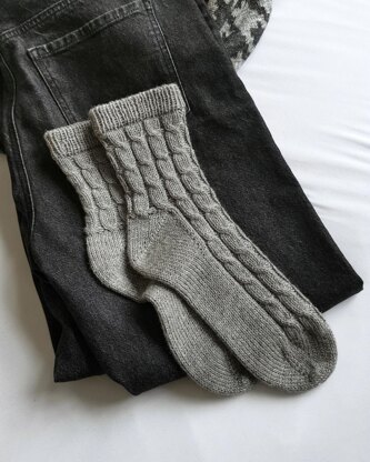 The ZOLA socks are cozy socks in a simple cable pattern. With classic 6-ply sock yarn and 3.0 mm (US