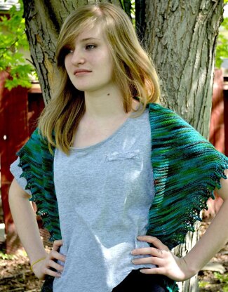 I am not really sure why this shawlette reminds me of zombies, but it does. It could be the colors. It could be that I just have a very odd sense of humor. It could be both. I really enjoyed knitting up this shawlette. It is knit sideways with a garter body. Short rows and lace help keep this knit from being too “zombie-like”. I wanted to create something that would work for those variegated yarns in my stash!