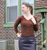 An ideal transitional piece, the sweater is knit with worsted weight yarn, features 3/4 sleeves, and is knit from the bottom up. There’s minimal shaping throughout, but the ribbing effect helps pull in and create a waistline.