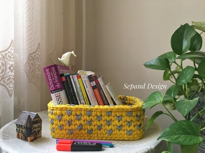The PDF contrains a step by step tutorial guide (photo and written instruction) to make your basket. And the chart for base.