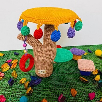 Hello our friends and amigurumi lovers around the world, we designed a fully crocheted Amigurumi Jungle of dreams, we will lunch our new soft jungle items in parts. In this pattern we launch jungle of dream named (Umbrella tree). This pattern is containing (Tree body, Umbrella, Fixed table and chairs), such a beautiful crochet Umbrella tree will be an amazing gift for a little Kid in different occasions or a decoration item. The suitable doll that matching with this pattern will publish in our store for free.