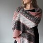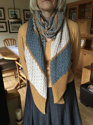 Notes: I knew I had more than enough yarn to knit the sample size so knit exactly to the pattern. My scarf was not quite as big as suggested but probably due to the fact that my yarn was a very light 4 ply so gauge was not quite the same as the pattern. I’m very happy with the size. I followed the instructions exactly, going up a needle size for the mosaic sections, the only thing I omitted was the tassel.