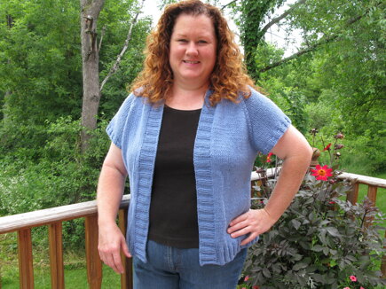 Lengthened sweater by knitting 4 additional rows in pattern (after knitting thru row 4 as per pattern for this size, knit rows 6 & 7 twice….Row 6, row 7, row 6, row 7). Then added to the ribbing. Knit 12 rows total of ribbing at the bottom. This lengthened the sweater by 2 inches.