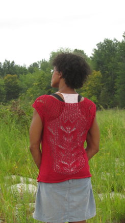 When I saw that botanical lace, I couldn't resist casting on for this gorgeous tee. It had to be in a vibrant colour, so I chose this red. The name of the garment is from a beautiful marsh flower, the Lobelia cardinalis.