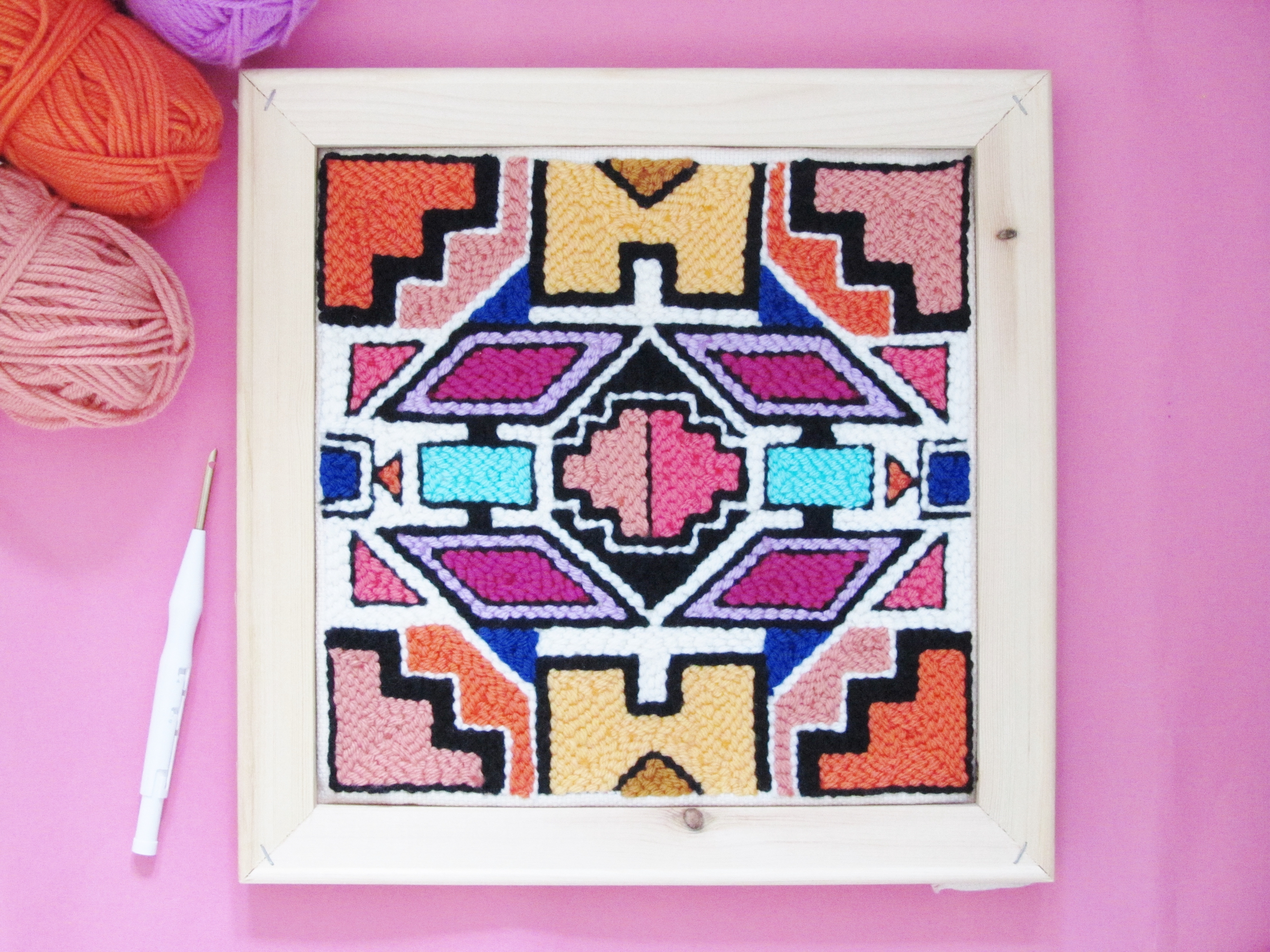 Published on 21 September 2020 2 min readInspired by the beautiful designs Ndebele women painted on their doors to celebrate their creativity, this gorgeous geometric punch needle project by Shikira at Kreative Pursuit is the perfect piece to hang with pride in your home.