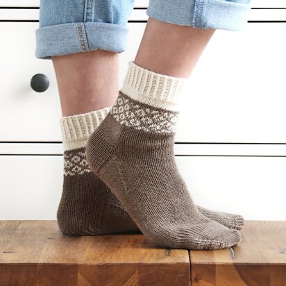 Super socks, snugly slippers and lovely leg warmers, find exactly what you need in our library of sock knitting patterns. From simple sock knitting patterns for beginners as well as more challenging designs with fun colour work, cables and more. We have a fantastic library of free sock knitting patterns too, to combine with your favourite sock yarn. Wanting to knit your first pair of socks? Our how to knit socks tutorial and video will be sure to help you out!