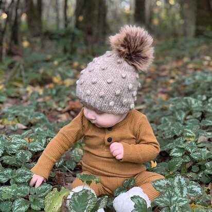 • Knitting PATTERN Baby Hat with Crochet Flower and Pom Pom