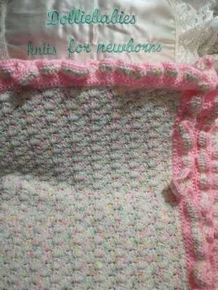 Instructions for a stroller sized crochet blanket. This blanket can be adjusted in length to suit your own needs without it affecting the border. It is also ideal for Special Baby Care Units as it is not a particularly lacy pattern for little fingers to get stuck in. This pattern is also suitable for beginner crocheters.