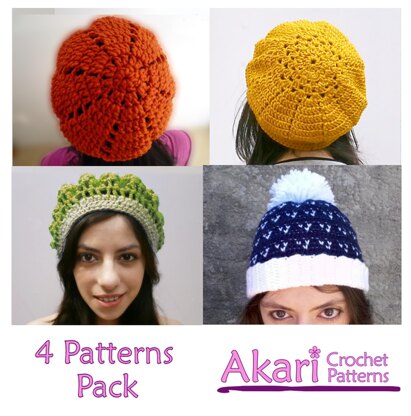 With this pack you get 4 crochet hats patterns and only pay for 3 of them! 1 pattern FREE. -✿ Easy to intermediate skill level. -✿ Written in American terms. PATTERNS INCLUDED: - M03 Easy crochet beanie - L03 DESERT FLOWER - L02 Beret in two colors - M62 LITTLE HEARTS ................................
