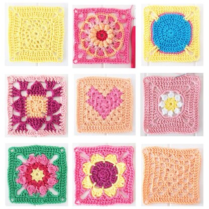 Please note: the yarn amounts suggested in this listing are based on making 8 of each square (80 squares in total)
