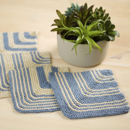 Yarn Requirements: 1 skein each Valley Yarns Leverett (70% Pima Cotton/ 30% Linen; 50g/109yds) shown in 001 Natural and 008 Sky - will produce 4 dishcloths