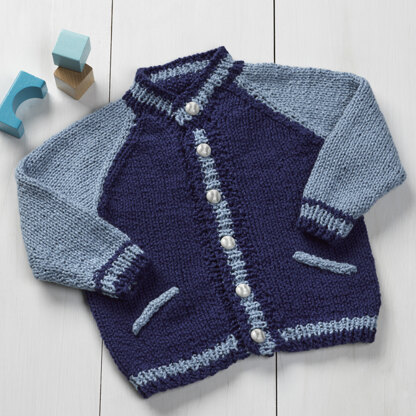 Valley Yarns Buckeye is a lovely, gender-neutral infant jacket sized to fit active little baseball fans from newborn to