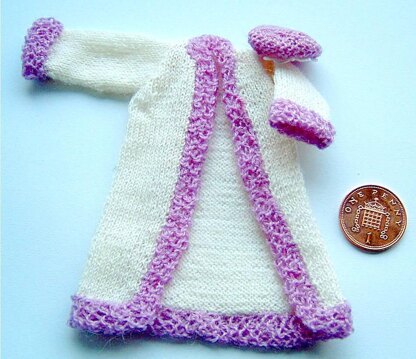 Approximate finished sizes: Coat- 1½-inches/4 cm wide at chest, sleeve 1-inch/2.5 cm long, height – 4-inches/10 cm. Jumper - 1-inch/2.5 cm wide at waist, 1¼-inches/3 cm wide at chest, height – 1¼-inches/3.5 cm. Skirt - 1-inch/2.5 cm wide at waist, height – 1½-inches/4 cm. Hat - ½-inch/0.75 cm wide by ½-inch/0.75 cm high.