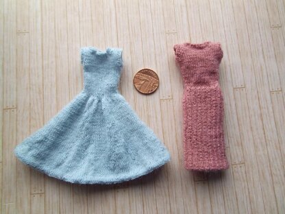 Approximate finished sizes: Full skirted dress - 2.5 cm/1-inch at waist, 11 cm/4½-inches across base of skirt, 3 cm/1¼-inches at chest, back neck to hem = 10 cm/4-inches. Wiggle skirt dress - 2.5 cm/1-inch at waist, 3 cm/1¼-inches across base of skirt, 3 cm/1¼-inches at chest, back neck to hem = 9 cm/3¾-inches.