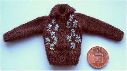 Approximate finished sizes: Embroidered jumper or cardigan – 1¼ inches/3 cm wide (excluding sleeves) by 2-inches/5 cm high.