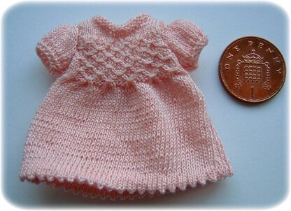 1:12th scale pattern for a Girl’s smocked dress for a 4-inch/10 cm tall dolls house doll.