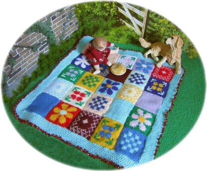 Approximate finished sizes of knitted squares Each finished square measures approximately 1¼-inch/3 cm. NOTE: as this rug can be made any size by adding or subtracting squares no finished measurements are given, but the square rug (5 x 5 squares), as shown in the photos, would be approximately 7-inches/17.5 cm square including the edgings.