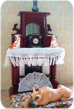 1:12th scale Victorian mantel cover, mats & fan
