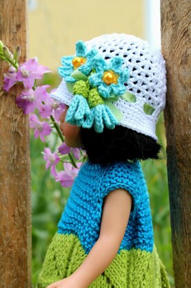An adorable daisy hat for your 12-inch doll. This hat makes a great gift for any little girl who loves dressing her doll up! This hat gives you a lovely summer accessory to add to your dolls wardrobe.