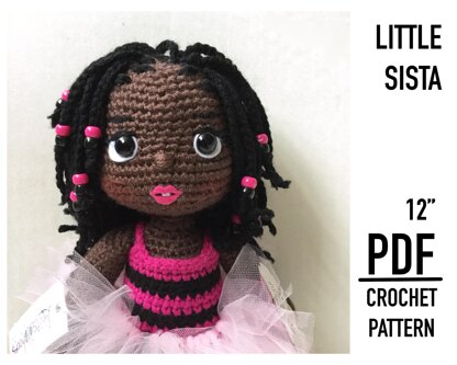 A little sister is a great friend and playmate and this Little Sista will be no different. Following this comprehensive and versatile pattern you will be able to create the doll along with her braids and other hairstyles, and the outfits as shown. There is also instruction for other ideas not pictured. A wide variety of dolls can be created from this single pattern.